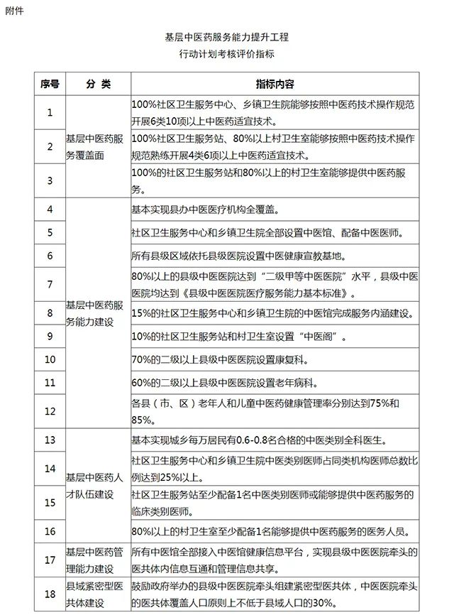 附件:基层中医药服务能力提升工程行动计划考核评价指标