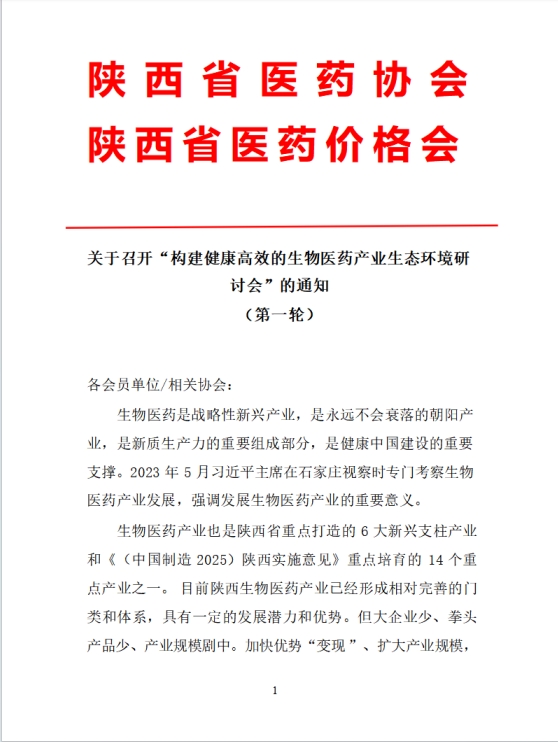 构建健康高效的生物医药产业生态环境研讨会会议通知